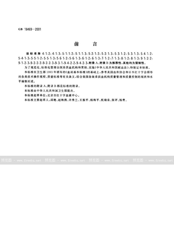 国家标准《全血及成分血质量要求》由361(国家卫生健康委员会)归口上报及执行,主管部门为国家卫生健康委员会。