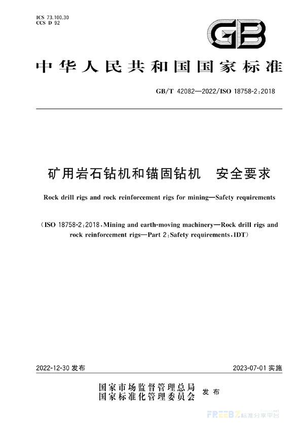 国家标准《矿用岩石钻机和锚固钻机 安全要求》由TC88(全国矿山机械标准化技术委员会)归口上报及执行,主管部门为中国机械工业联合会。