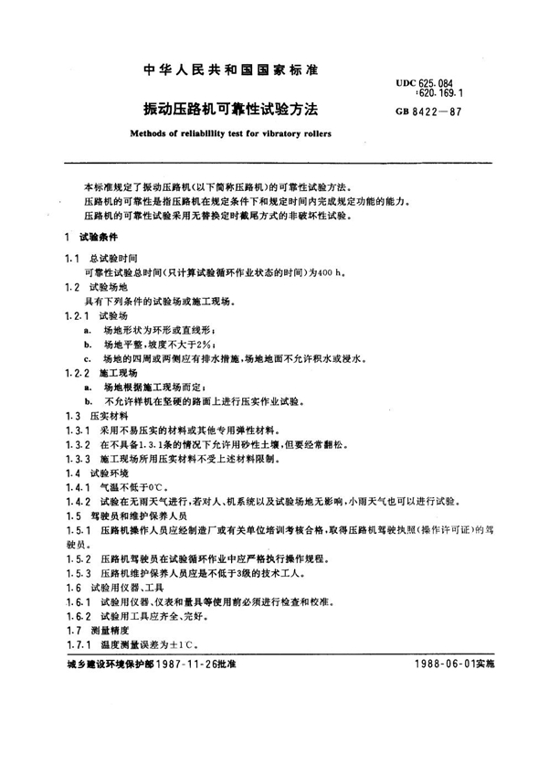 GB 8422-1987 振动压路机可靠性试验方法