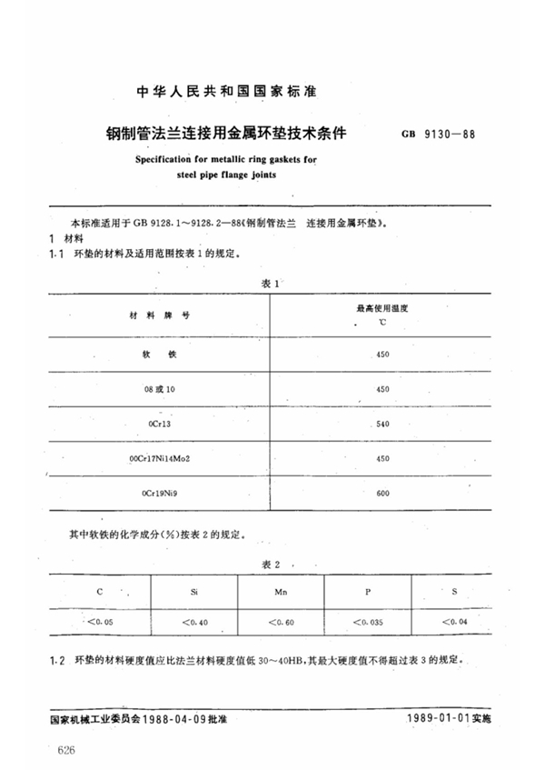 GB 9130-1988 钢制管法兰连接用金属环垫技术条件