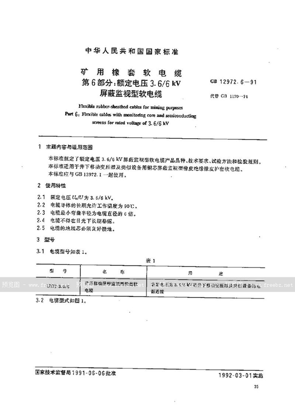 标准名称:矿用橡套软电缆 第六部分:额定电压3.6/6 kV 屏蔽监视型软电缆