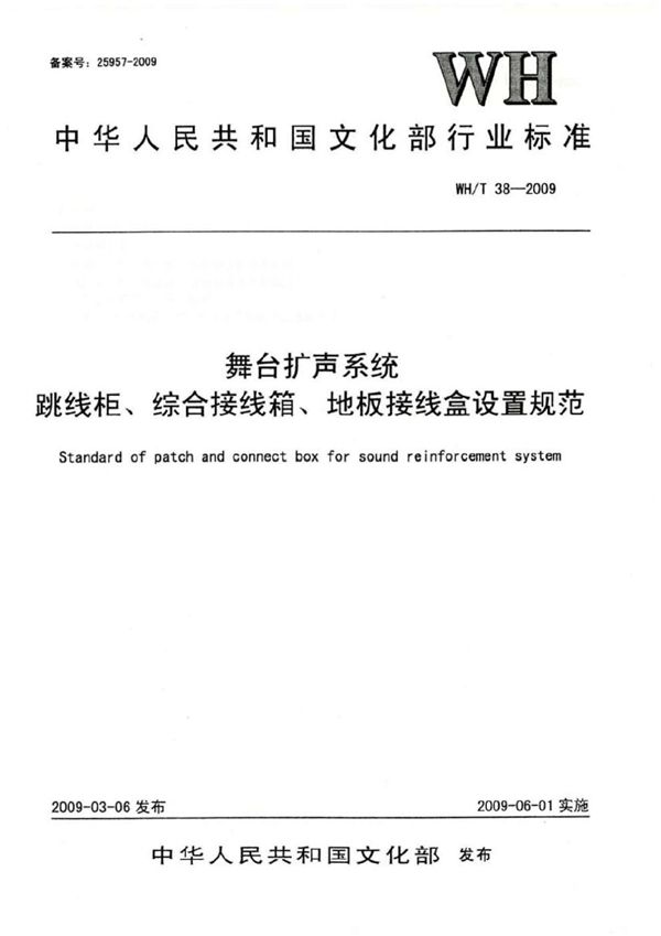 标准名称:舞台扩声系统跳线柜、接线箱(盒)及设置规范