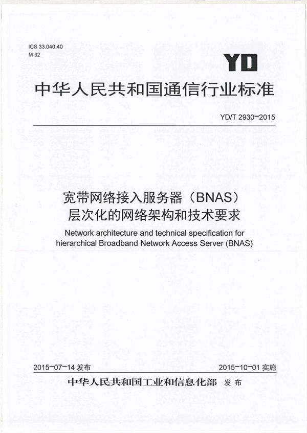 标准名称:宽带网络接入服务器(BNAS)层次化的网络架构和技术要求