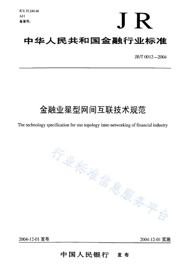 本标准制定了各金融机构与中国人民银行进行计算机网络互联应遵循的技术要求和规范,包括网间互联结构、网间互联技术实现、IP地址和域名规划、网间互联应用、网间互联管理的技术实现和规范,其目的是建立金融机构间信息交换与共享的统一规范的网络通信平台。适用于在中华人民共和国境内开业的所有银行、保险、证券及其它金融机构。