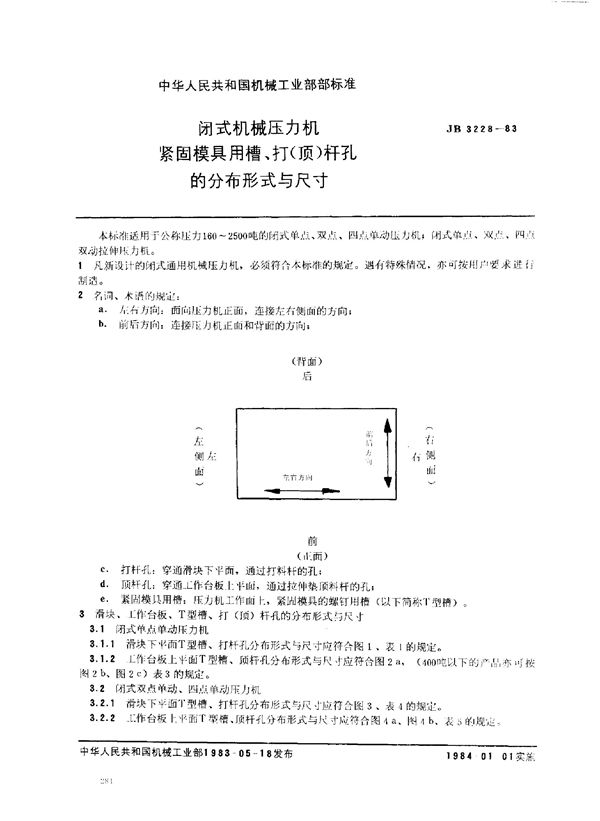 标准名称:闭式机械压力机 紧固模具用槽打(顶)杆孔的分布形式与尺寸