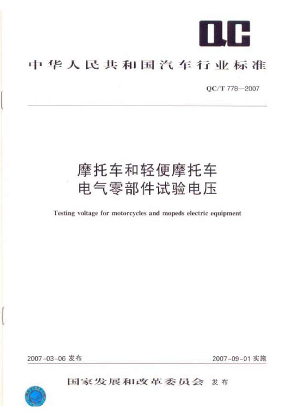 标准名称:摩托车和轻便摩托车电气零部件试验电压
