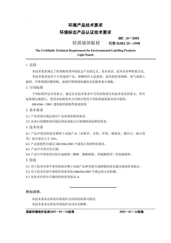 标准名称:环境标志产品认证技术要求 轻质墙体板材