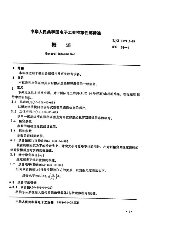 SJ/Z 9124.1-1987 唱片和唱机 概述