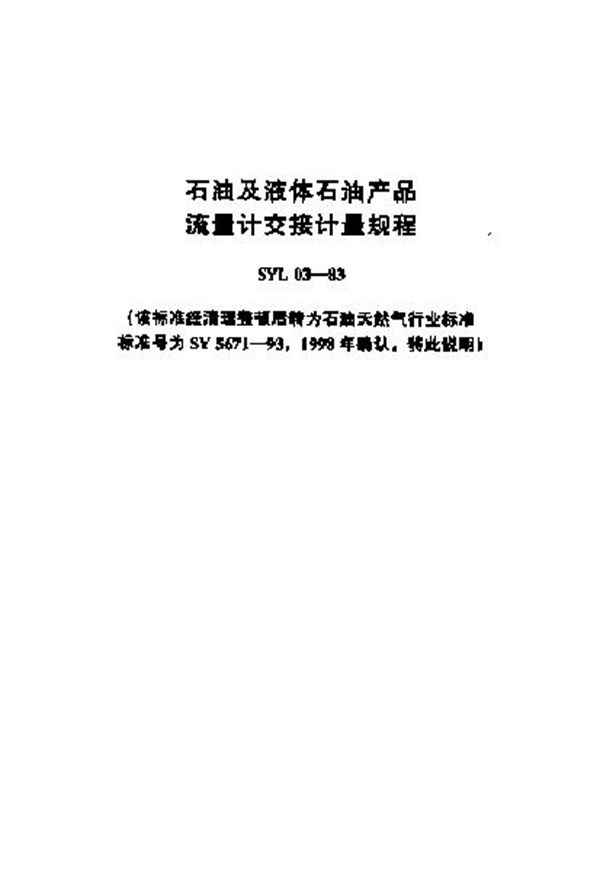 标准名称:SYL 03-83 石油及液体石油产品流量计交接计量规程