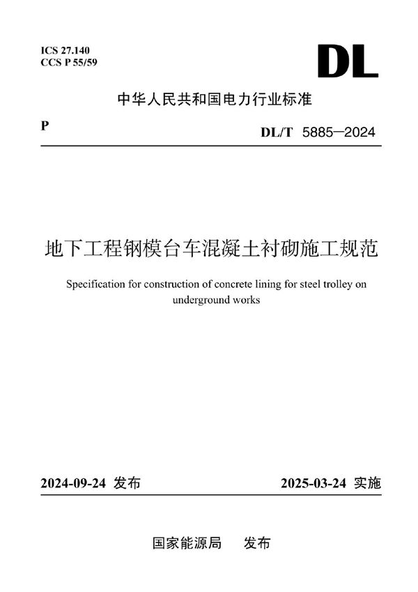 技术归口:电力行业水电施工标准化技术委员会(DL/TC 29)
