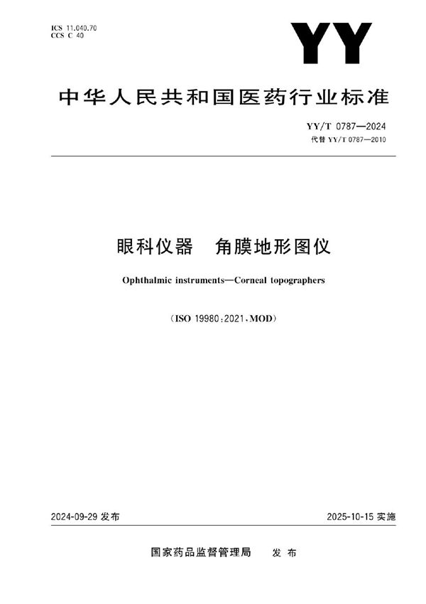 适用范围:本文件规定了角膜地形图仪仪器和系统的最低要求、随附文件和标记,描述了相应的试验方法。本文件适用于测量人眼角膜表面形状的仪器或系统。 本文件不适用于眼科仪器中的角膜曲率计。