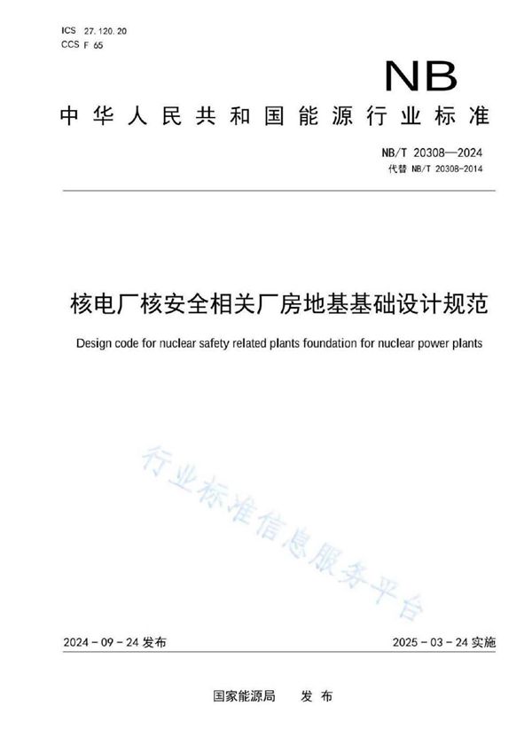 标准名称:核电厂核安全相关厂房地基基础设计规范