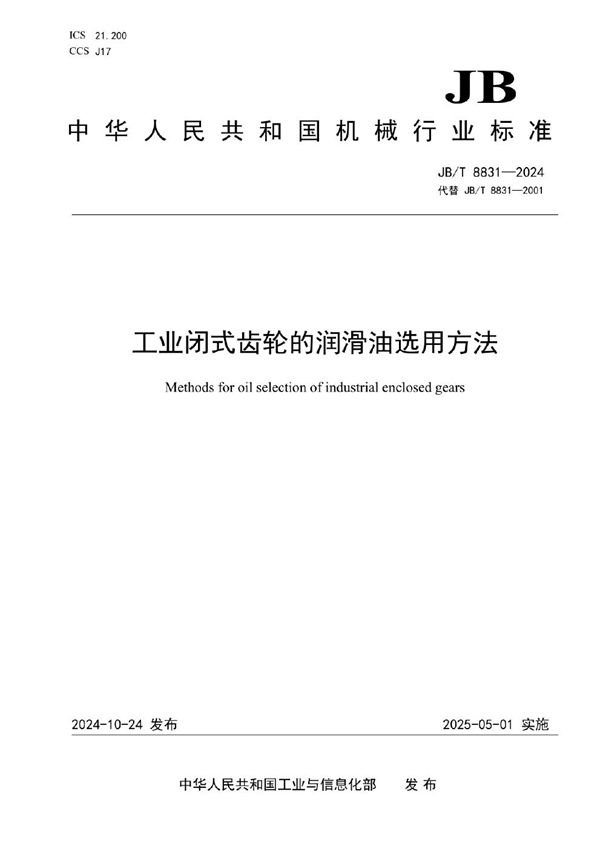适用范围:本文件描述了工业闭式齿轮用润滑油的种类、黏度、润滑方式的选择方法,规定了润滑油的保养和更换要求。本文件适用于渐开线圆柱齿轮、圆弧齿圆柱齿轮、锥齿轮和蜗轮蜗杆的闭式齿轮传动装置的润滑油选用,其中圆柱齿轮的节圆圆周速度不大于170m/s,小齿轮最高转速不大于60000r/min。本文件不适用于车辆、钟表和仪器仪表等有特殊要求的齿轮传动的润滑油。