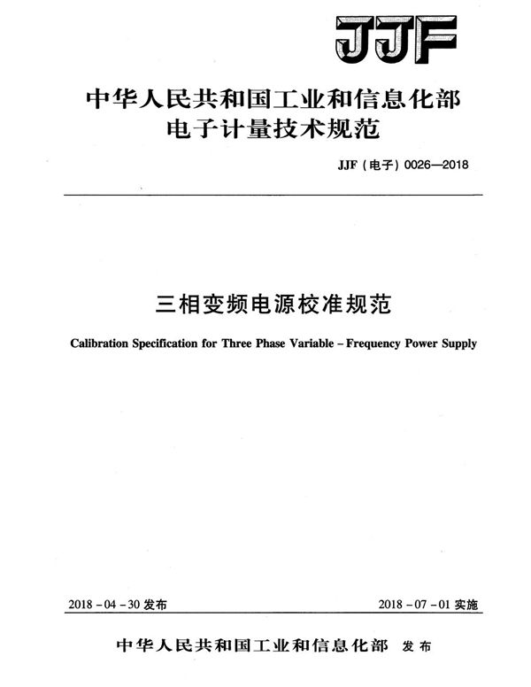 英文名称:Calibration Specification for Three Phase Variable-Frequency Power Supply