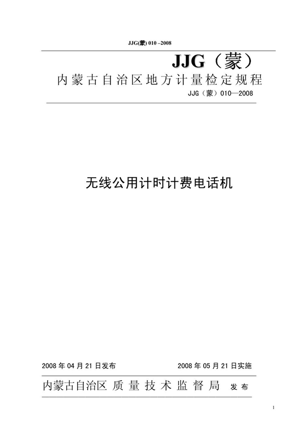 JJG(蒙)010-2008 无线公用计时计费电话机检定规程