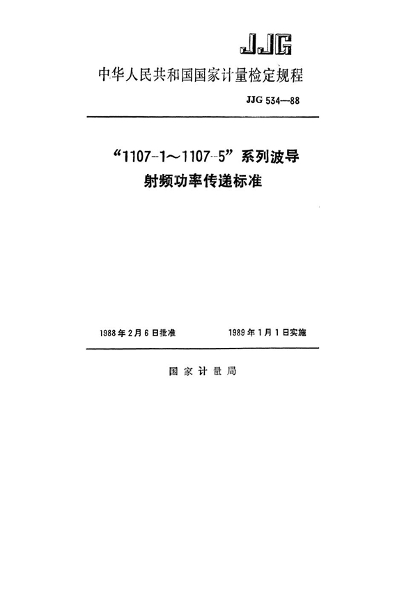 标准名称:“1107-1~1107-5”系列波导射频功率传递标准检定规程