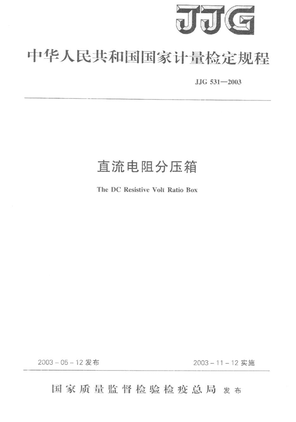 本规程适用于具有固定比率,额定输入电压上限小于或等于1.5kV,准确度等级为0.0005级~0.1级直流电阻分压箱(以下简称分压箱)的首次检定、后续检定和使用中检验。