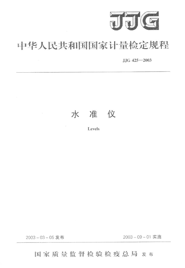 本规程适用于DS05、DSZ05、DS1、DSZ1、DS3、DSZ3级别水准仪的首次检定、后续检定和使用中检验。