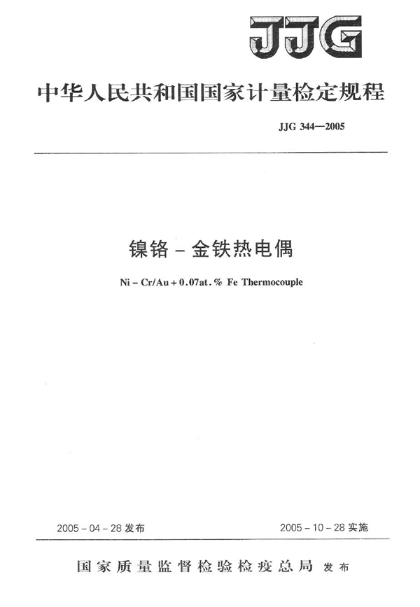 本规程适用于测量范围为42K~27315K的标准和工作用镍铬-金铁热电偶(以下简称热电偶)的首次检定、后续检定和使用中的检验。