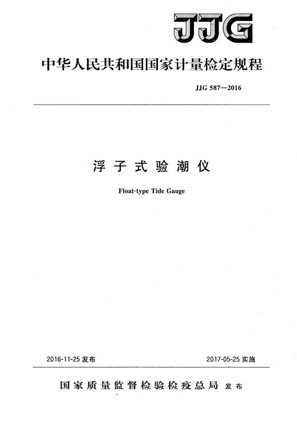 标准名称:浮子式验潮仪检定规程