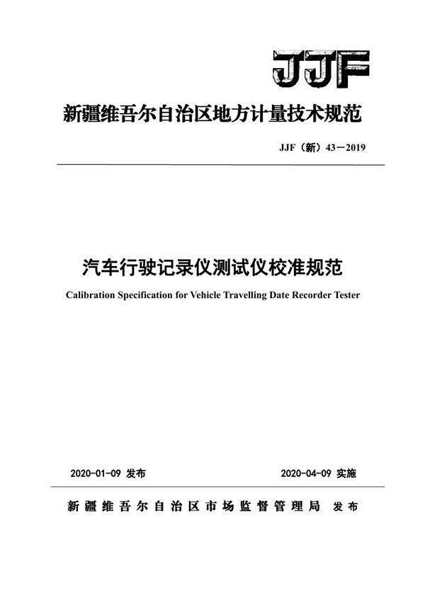 JJF(新) 43-2019 汽车行驶记录仪测试仪校准规范
