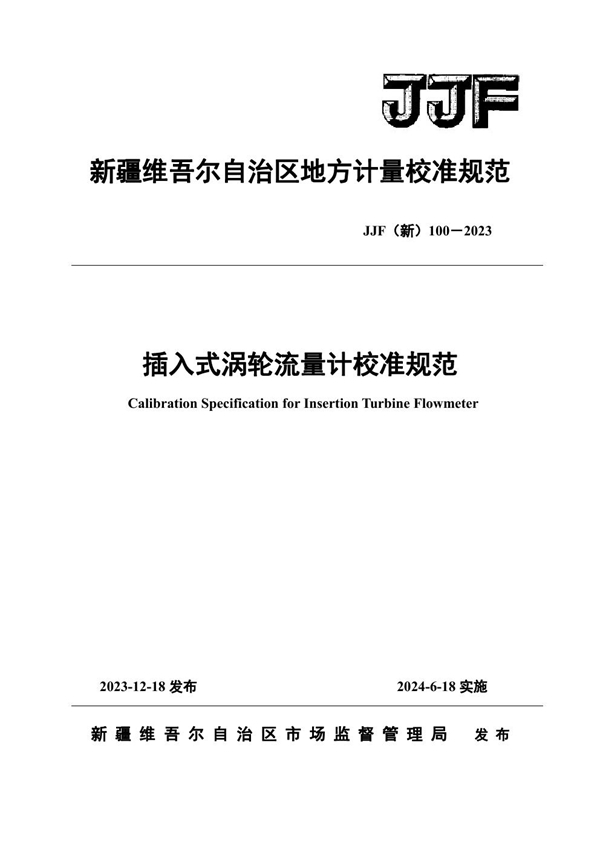 JJF(新) 100-2023 插入式涡轮流量计校准规范