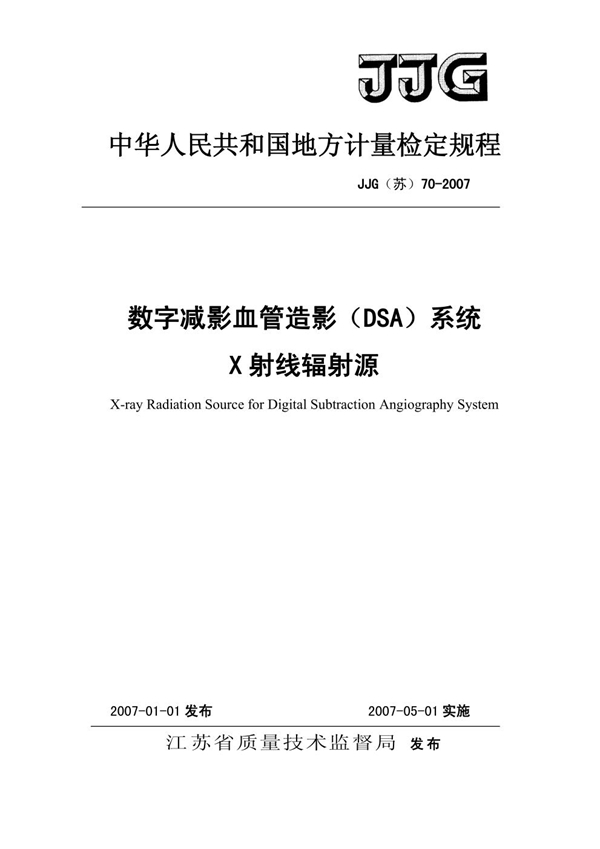 JJG(苏) 70-2007 数字减影血管造影(DSA)系统