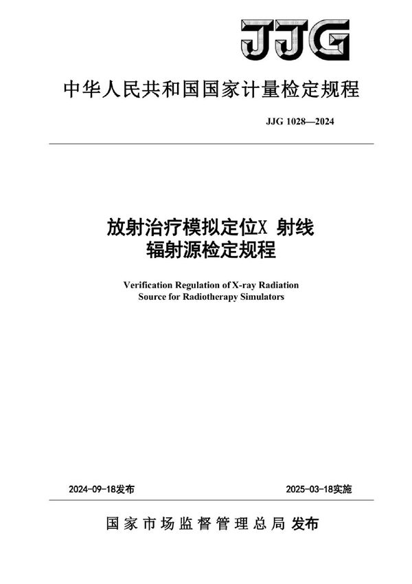 英文名称:Verification Regulation of X-ray Radiation Source for Radiotherapy Simulators