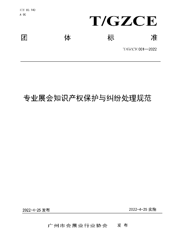 标准名称:专业展会知识产权保护与纠纷处理规范