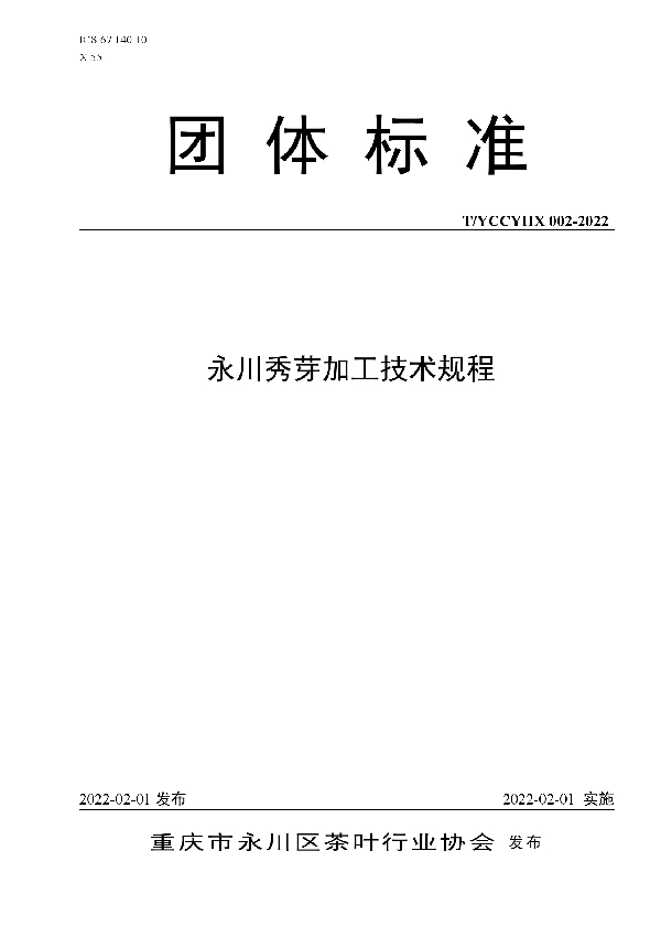 标准名称:永川秀芽加工技术规程