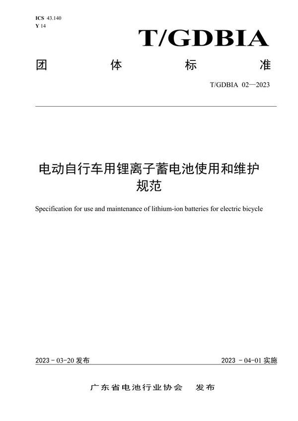 英文标题:Specification for use and maintenance of lithium-ion batteries for electric bicycle
