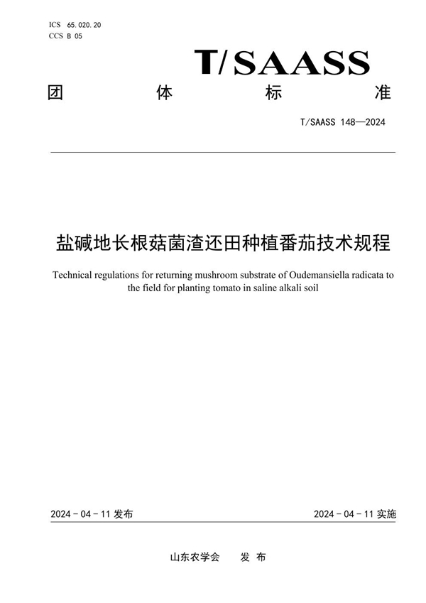 标准名称:盐碱地长根菇菌渣还田种植番茄技术规程