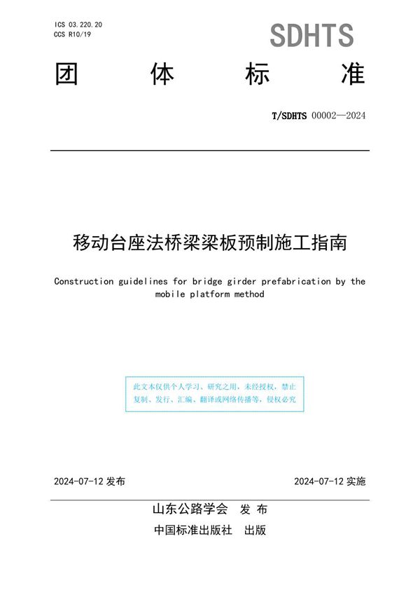 范围:本文件提供了移动台座法桥梁梁板预制场地布置、移动台座设计与制作、模板制作与安装、施工与检验的指导技术。本文件适用于应用移动台座法进行后张预应力梁板预制施工。