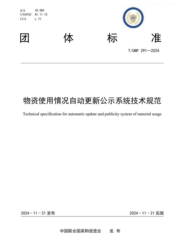 标准编号:T/UNP 291—2024