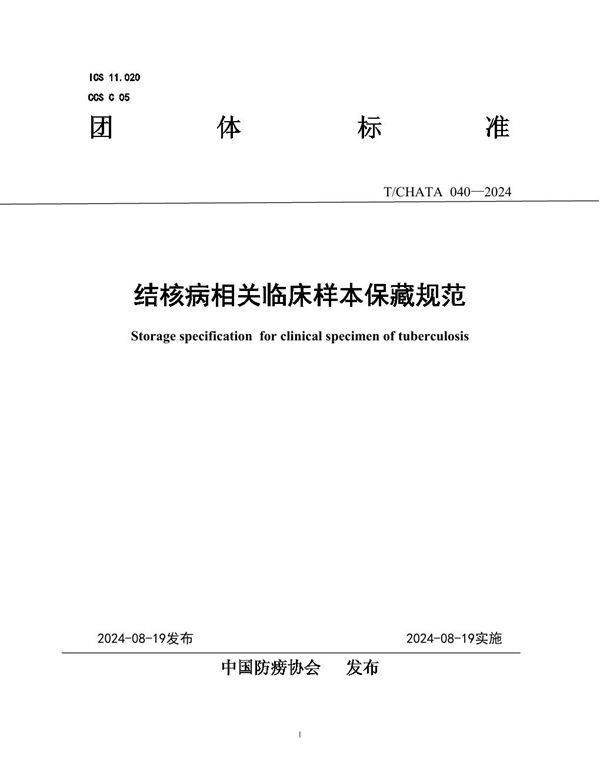 英文标题:Storage regulation of Clinical Specimen of tuberculosis