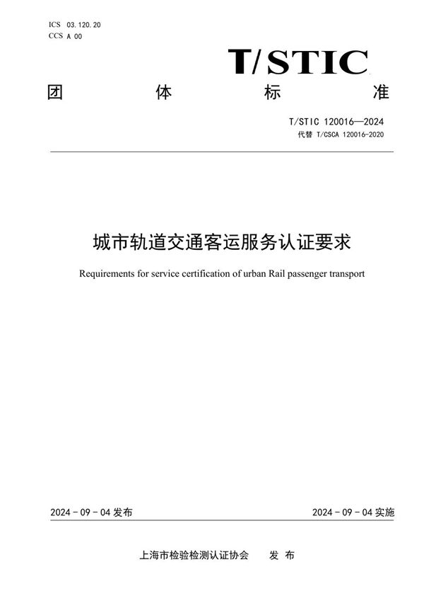 英文标题:Requirements for service certification of urban Rail passenger transport
