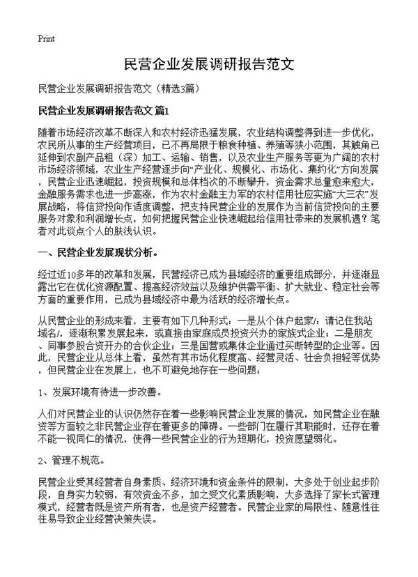 民营企业发展调研报告范文 (共9页) 【免费下载】