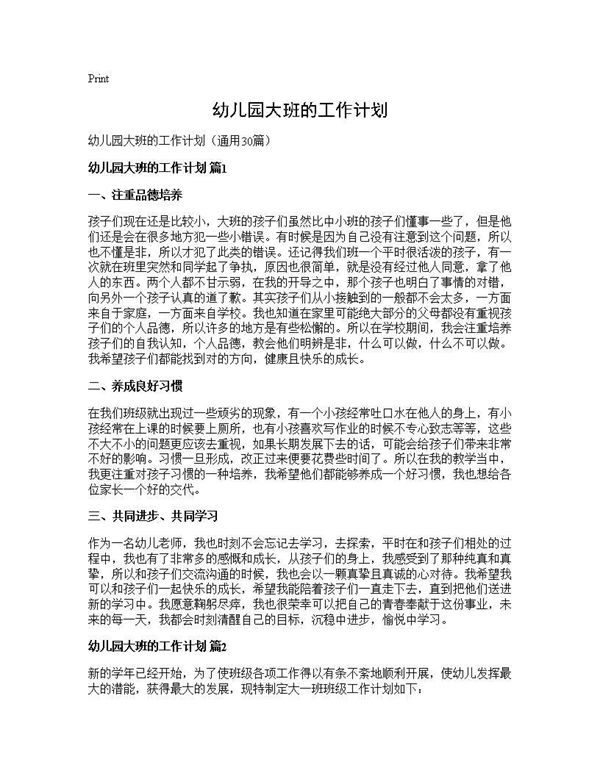 幼儿园大班的工作计划 (共58页) 【免费下载】
