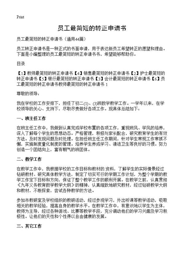 员工最简短的转正申请书 (共33页) 【免费下载】