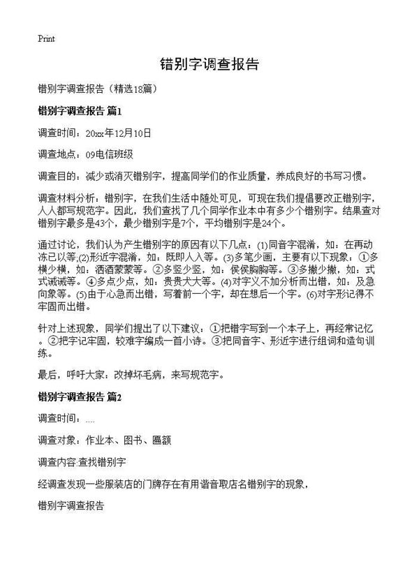 错别字调查报告 (共13页) 【免费下载】