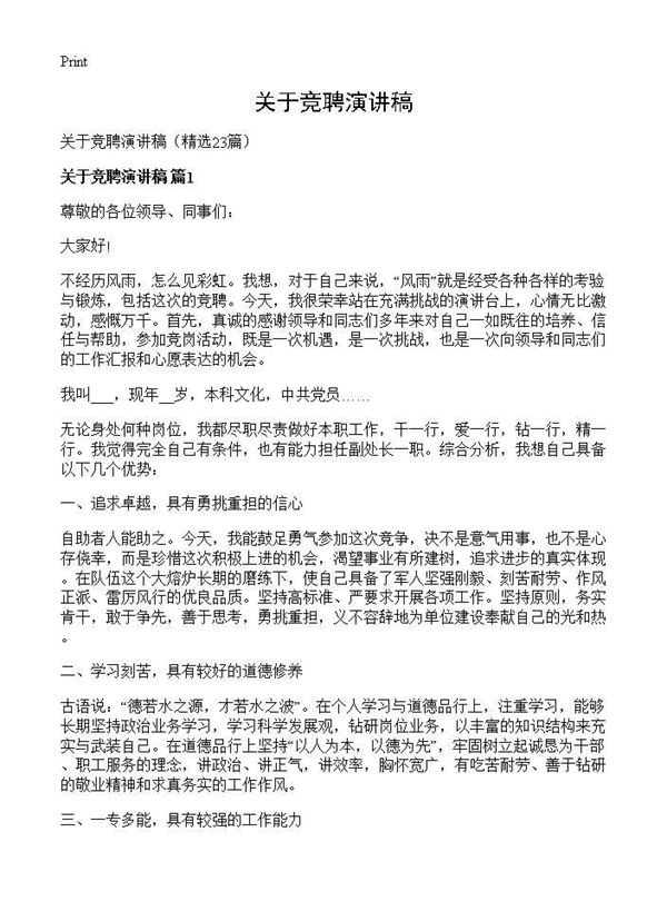 关于竞聘演讲稿 (共32页) 【免费下载】