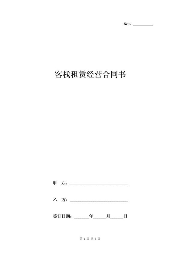 客栈租赁经营合同协议书范本- (共5页) 【免费下载】