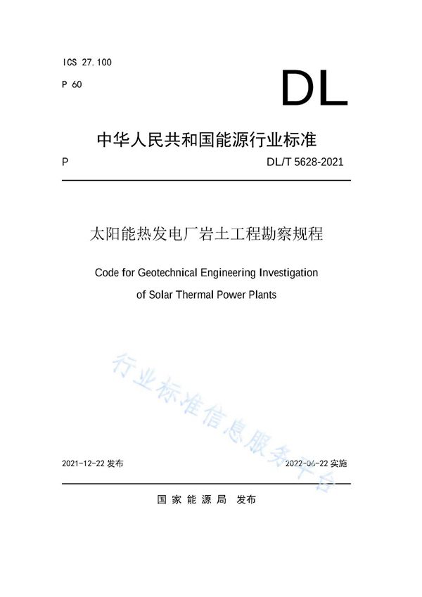 DL/T5628-2021《太阳能热发电厂岩土工程勘察规程》是由国家能源局发布的电力行业标准,主要针对太阳能热发电厂的岩土工程勘察工作提供技术规范和指导。该规程明确了太阳能热发电厂建设前岩土工程勘察的基本要求、工作内容和技术方法,包括场地稳定性评价、地基条件分析、岩土参数确定以及勘察报告编制等关键环节,旨在确保太阳能热发电厂选址和设计的科学性与安全性,为工程建设和运营提供可靠的地质依据。该标准的实施有助于规范太阳能热发电项目的岩土勘察流程,提升工程质量和风险防控能力,促进太阳能热发电行业的健康发展。
