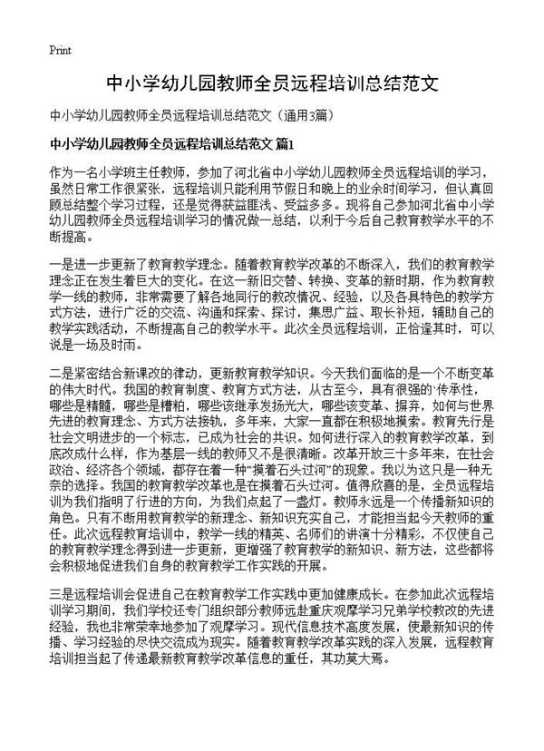 中小学幼儿园教师全员远程培训总结范文 (共3页) 【免费下载】