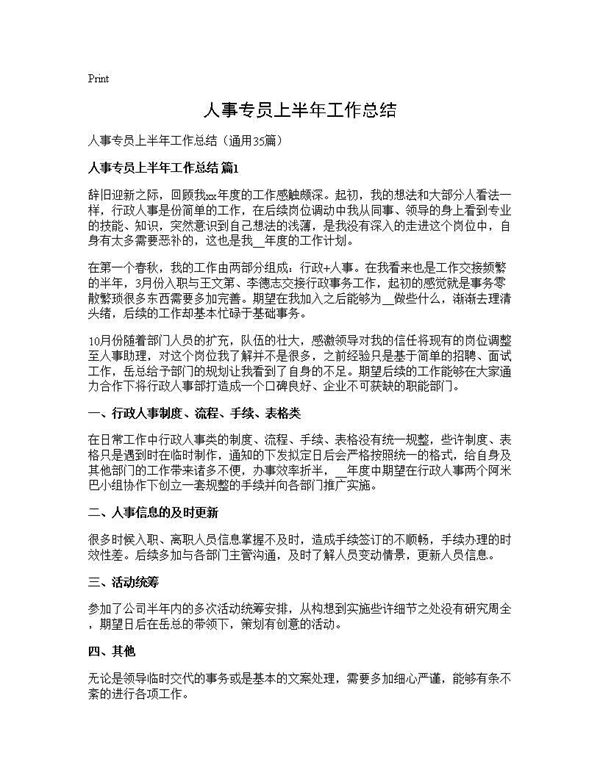 人事专员上半年工作总结 (共62页) 【免费下载】