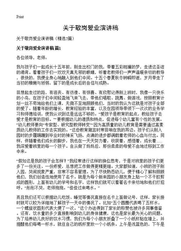 关于敬岗爱业演讲稿 (共6页) 【免费下载】