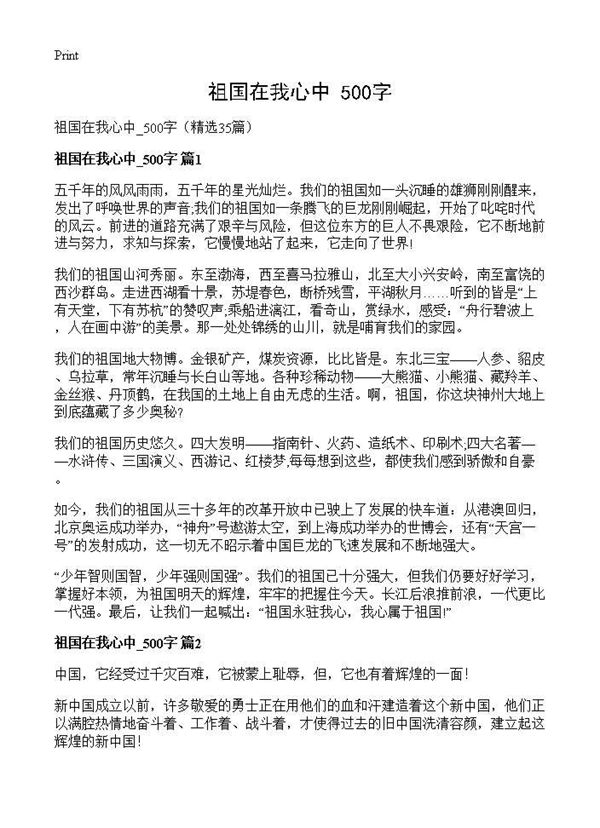 祖国在我心中 500字 (共21页) 【免费下载】
