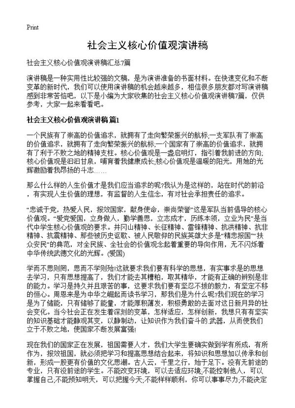 社会主义核心价值观演讲稿 (共7页) 【免费下载】