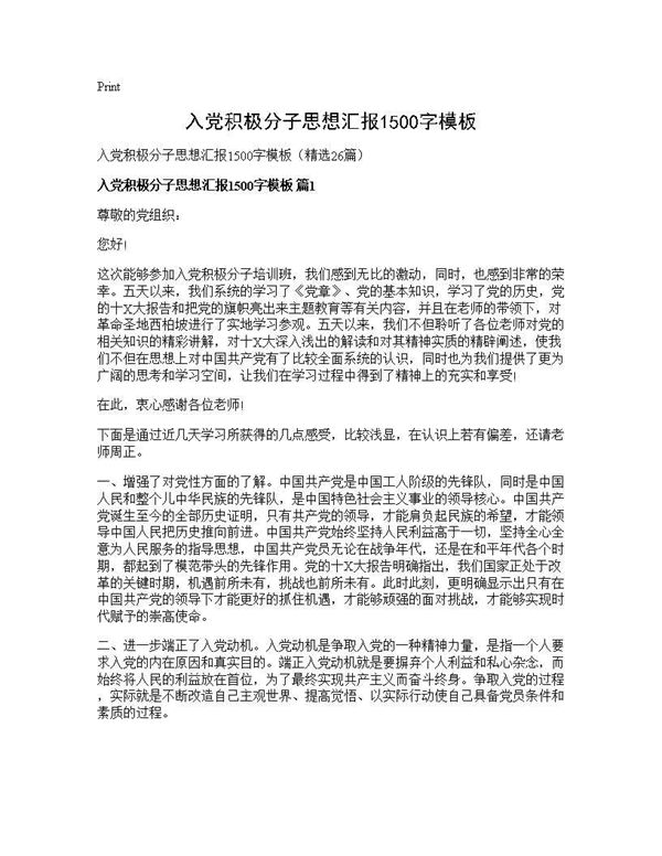 入党积极分子思想汇报1500字模板 (共33页) 【免费下载】