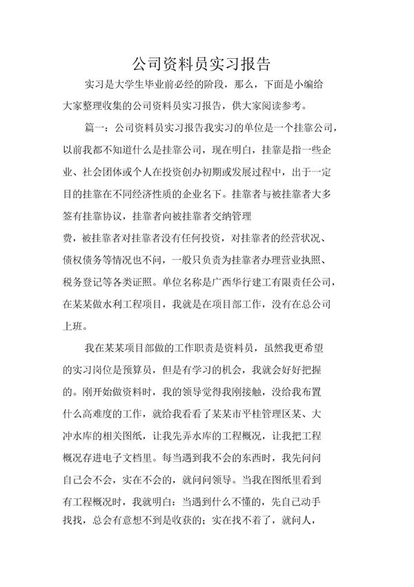 在公司资料员实习期间,我主要负责协助整理、归档和管理各类文件资料,确保信息准确性和可追溯性。通过实践熟悉了档案分类、电子文档录入及保密流程,提升了办公软件操作能力与团队协作意识。这段经历让我深入理解了资料管理的重要性,为今后职业发展积累了宝贵经验。